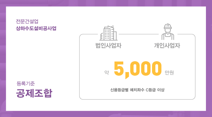 자본금 1억 5천만원 이상을 준비 해 주셔야 상하수도설비공사업 면허 등록을 진행할 수 있게 됩니다.