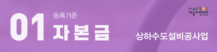 더불어 법인사업자는 법인등기부등본상 납입자본금도 등록기준 이상인 1억 5천만원 이상을 갖추어야 하며, 사업목적란에 상하수도설비공사업에 대한 목적이 기재되어야 하는 점도 잊지 말아주시기 바랍니다.