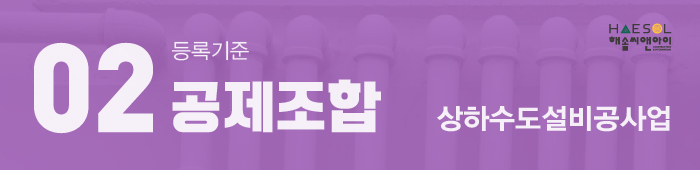 공제조합은 상하수도설비공사업 운영 시 필요로 한 각종 보증업무를 해주는 곳으로, 다소의 위험성을 가진 건설사업 운영 특성 상 반드시 준비되어야 하는 부분입니다.