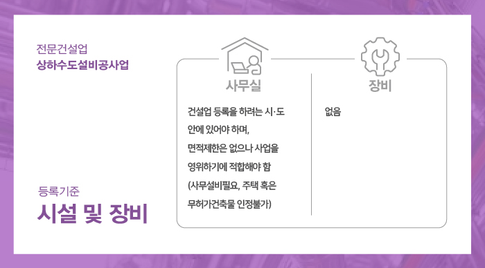 상하수도설비공사업 운영이 가능한 사무실이 준비되어야 면허 취득을 진행할 수 있습니다.