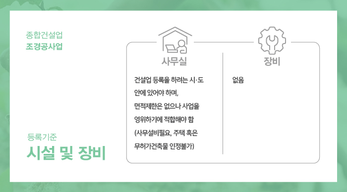 - 건설업 등록을 하려는 시/도 안에 위치해야 합니다.