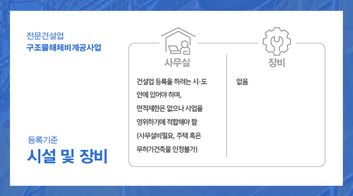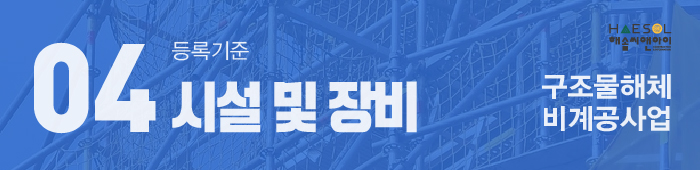 구조물해체비계공사업 시설 및 장비의 준비가 갖추어져야 합니다.
