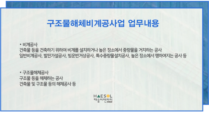 구조물해체비계공사업 면허 등록을 위해 준비해야 하는 시작부터 끝까지 해솔씨앤아이와 함께 해 보세요!