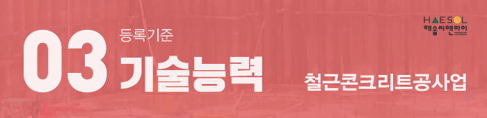오늘은 철근콘크리트공사업 면허 등록을 위해 준비해야 하는 등록기준 요건에 대해 알아보도록 하겠습니다.