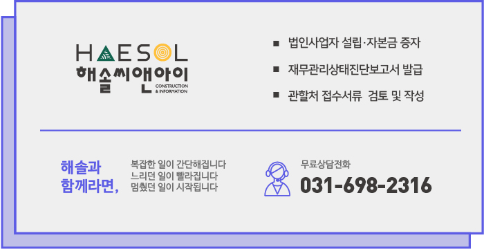 건설면허 취득의 핵심만 전달드리는 해솔씨앤아이입니다.