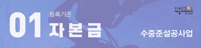 또한 법인사업체의 경우 법인등기부등본상 납입자본금도 등록기준인 1억 5천만원 이상을 충족하여 주셔야 하고, 사업목적란에 수중준설공사업에 관한 목적이 기재되도록 준비 해 주셔야 합니다.