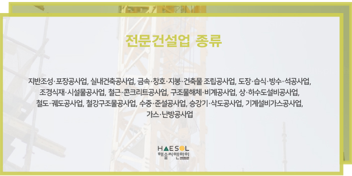 전문건설업면허 등록과 관련한 더 자세한 내용이 궁금하시다면, 언제든지 건설면허 전문가 해솔씨앤아이로 문의주세요!