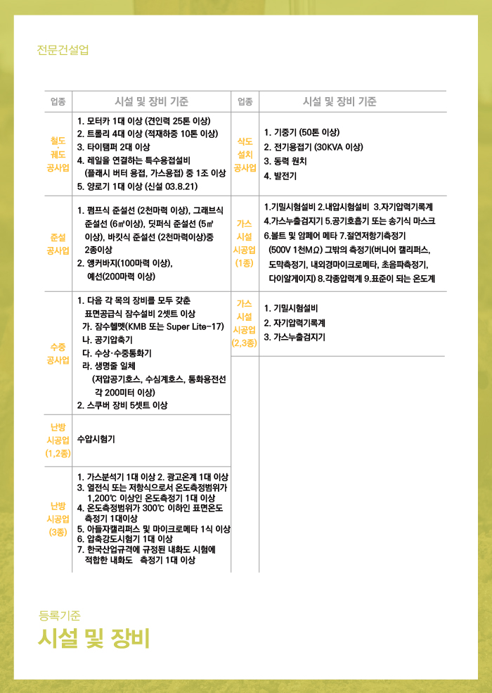 전문건설업면허 시설 및 장비의 준비해주셔야 합니다.