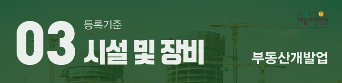 부동산개발업의 경우 별도로 규정된 특수 장비가 없으므로 시설로서 사무실의 요건을 잘 갖추어 준비해주시면 됩니다.