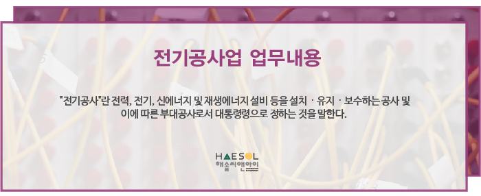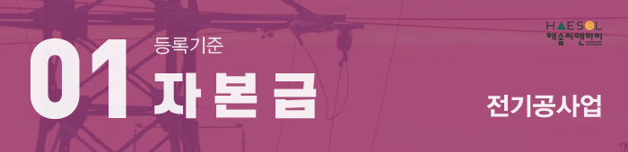 전기공사면허 등록을 위한 법인사업자 설립부터 자본금 증자, 기업진단보고서(재무관리상태진단보고서) 발급, 관할처 접수서류 검토 및 작성에 이르기까지 전 과정을 해솔씨앤아이와 함께 해 보세요!