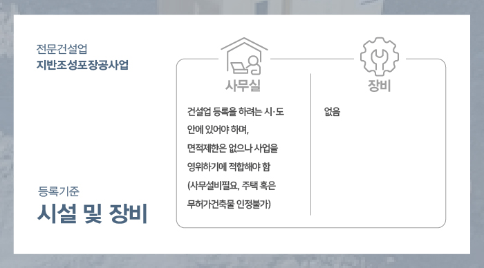 지반조성포장공사업 면허 등록 및 사업 운영을 하기 적합한 사무공간이 준비되어야 합니다.