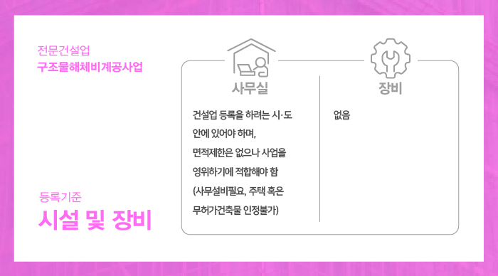 오늘은 구조물해체비계공사업 면허 등록기준에 대해서 안내드리도록 하겠습니다.