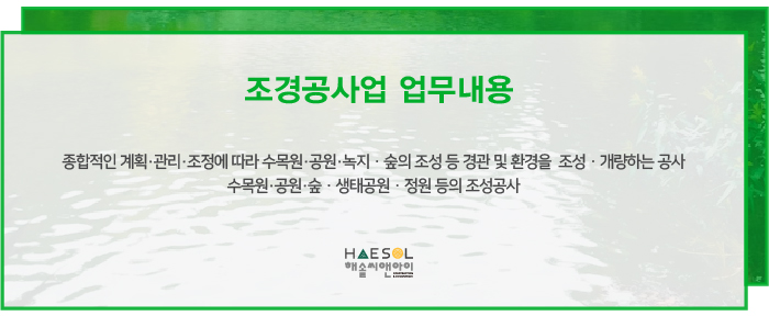 조경공사업 면허등록과 관련하여 보다 자세한 내용이 궁금하시다면 언제든지 건설면허 전문가 해솔씨앤아이로 문의주시기 바랍니다.