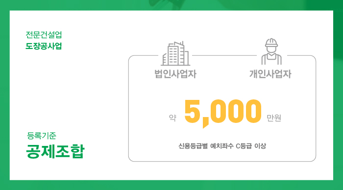 도장공사업 면허 취득을 하기 위해서는 법인 및 개인사업자 모두 1억 5천만원 이상의 자본금을 준비해주셔야 합니다.