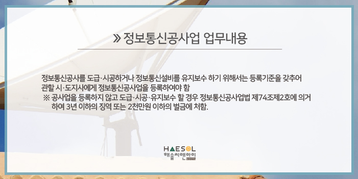 | 정보통신공사업 면허 등록 대비 준비사항 파악하기 (0) | 2022.06.20 |