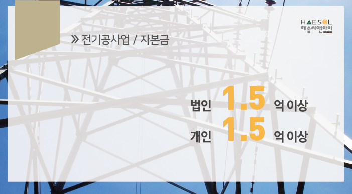 전기공사업 면허 등록을 위한 자본금은 법인 및 개인사업자 모두 1억 5천만원 이상으로