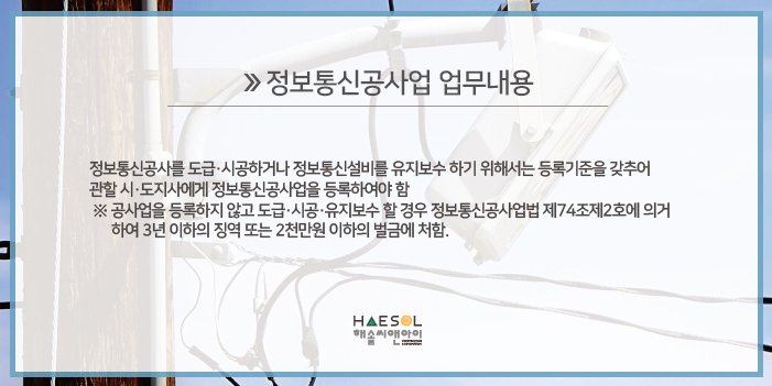 정보통신공사업 면허 등록이 필요합니다.