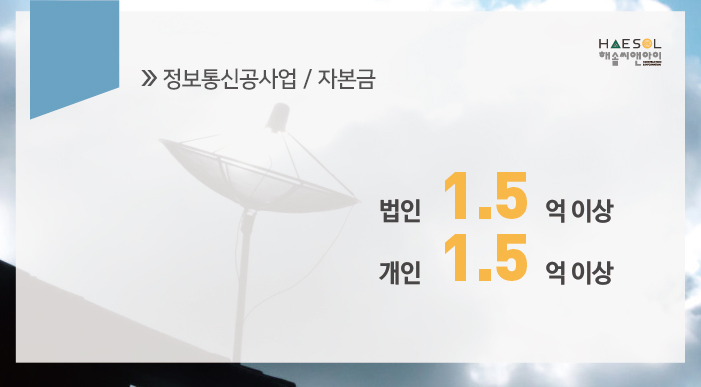 정보통신공사업 면허 등록을 위해서는 1억 5천만원 이상의 자본금이 준비되어야 합니다.