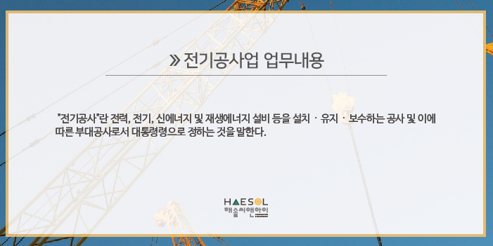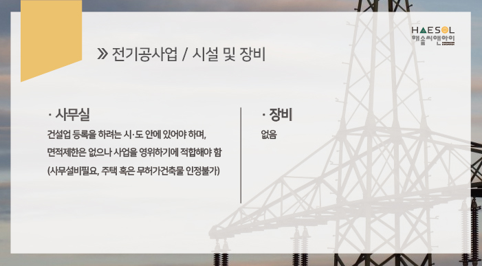 이번 시간에는 전기공사업 면허 등록기준에 대해 파악해보도록