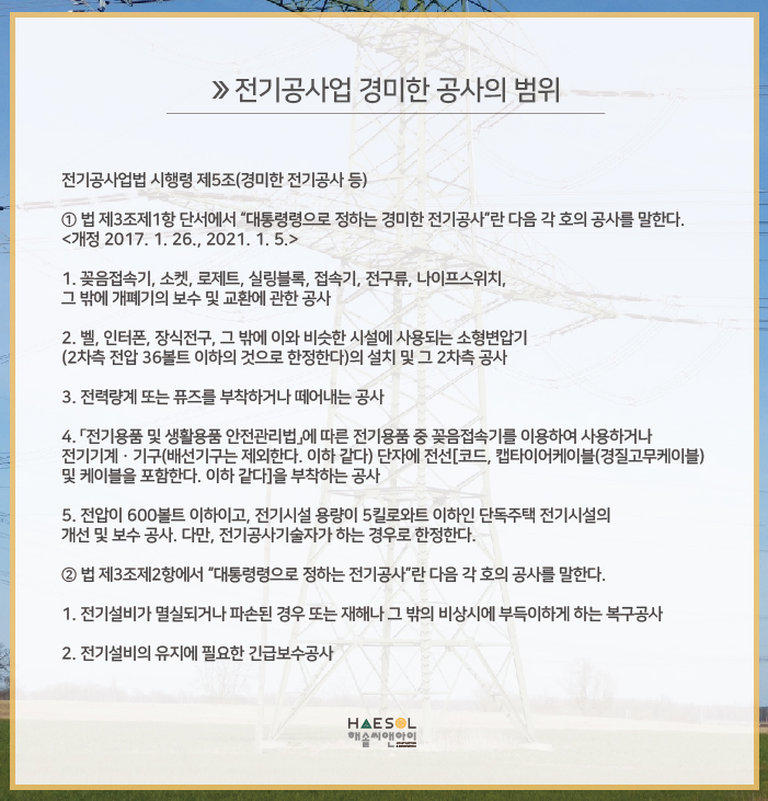 (단, 전기공사업법 시행령 제 5조에 해당되는