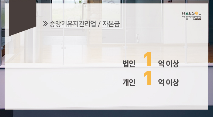 승강기설치공사업(1억 5천만원 이상) + 승강기유지관리업(1억원)으로