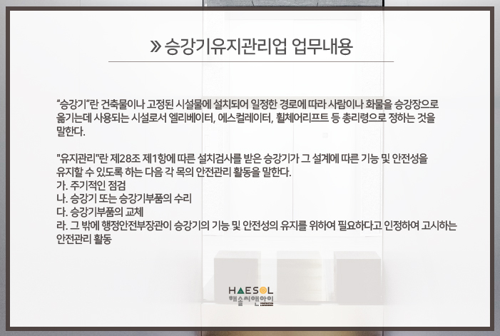 승강기의 유지·관리 또한 매우 중요한 부분이기에