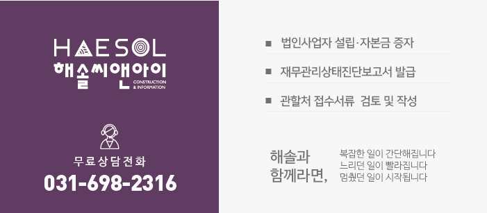 안녕하세요. 건설면허 전문가 해솔씨앤아이입니다.
