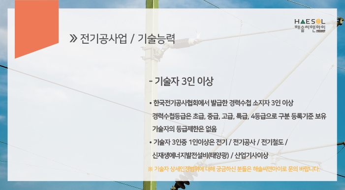 전기공사업 등록 및 유지를 위해서는 3인 이상의 기술자를