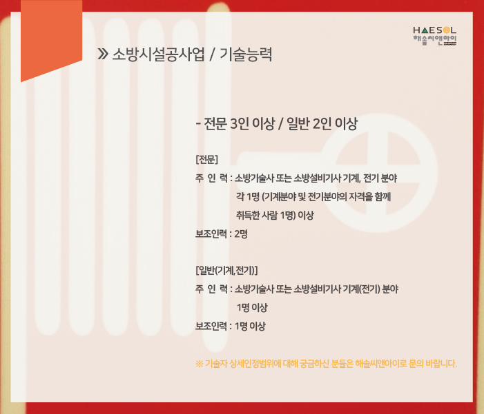이번 시간에는 소방시설공사업 전문 일반분야 면허 취득기준에 대해