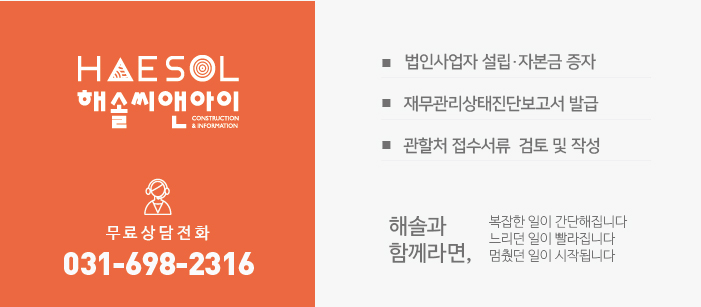 안녕하세요. 건설면허 전문가 해솔씨앤아이입니다.
