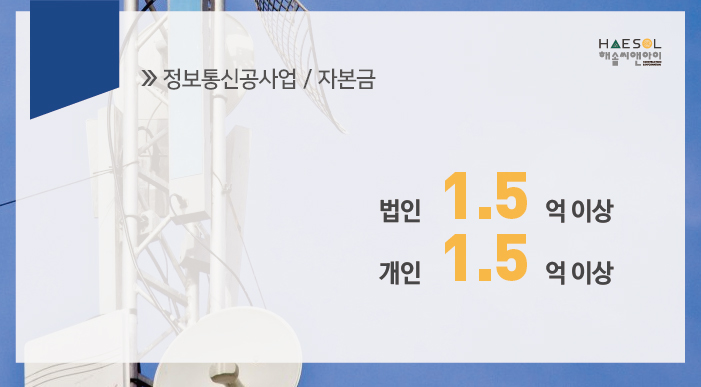 정보통신공사업 면허 등록을 위해서는 최소 1억 5천만원 이상의