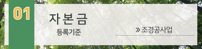 이 때, 자본금은 조경공사업 영위를 위한 목적으로 준비된 건설업 실질자산으로서 준비되어야 하며