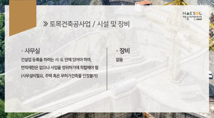 안녕하세요. 건설면허 전문가 해솔씨앤아이입니다.