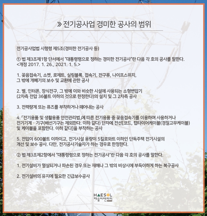오늘은 전기공사업 면허 등록기준과 절차에 대해 알아보도록 하겠습니다.