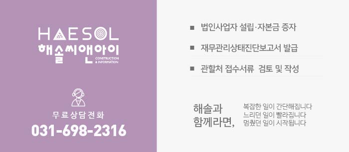 안녕하세요. 건설 경영 전문 컨설턴트 해솔씨앤아이입니다.