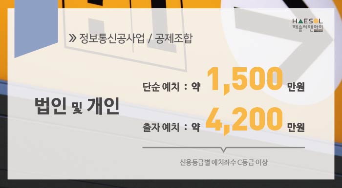 정보통신공사업 면허 등록을 위해서는 정보통신공제조합에 일정 금액을 예치하셔야 합니다.