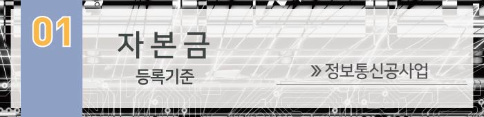 정보통신공사업 면허 발급을 위해 필요한 등록기준인 자본금, 공제조합, 기술인력, 시설 및 장비에 대해서 말씀드리도록 하겠습니다.