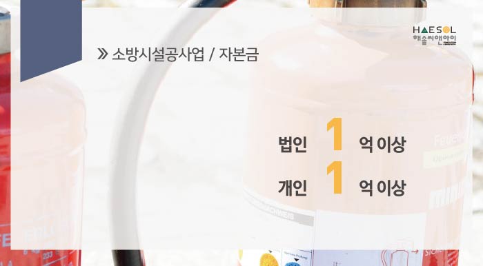 소방시설공사업 면허 취득을 하기 위한 자본금 1억 이상의 준비가 필요합니다.