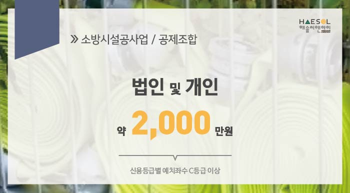소방시설공사업의 경우 소방산업공제조합에 약 2,000만원 가량의 출자금 예치가 필요합니다.
