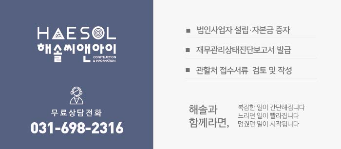 안녕하세요.건설 경영 전문 컨설턴트 해솔씨앤아이입니다.