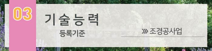 이번 시간에는 종합건설업 중 하나인 조경공사업 면허 발급을 위한 등록기준에 대해 설명드리도록 하겠습니다.