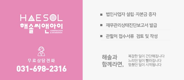 안녕하세요. 건설 경영 전문 컨설턴트 해솔씨앤아이입니다.