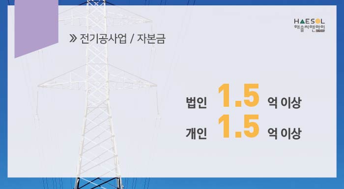 또한, 법인사업자는 법인등기부등본상 납입자본금도 등록기준 이상을 충족해야 하며 사업목적란에 전기공사업에 관한 목적이 기재되어야 한다는 점을 기억하여 주시기 바랍니다.