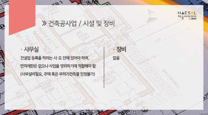 건축공사업 운영을 할 수 있는 적격한 사무실의 준비가 필요합니다.