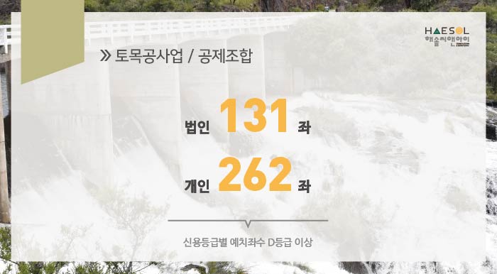 토목공사업은 건설공제조합에 일정 금액의 출자금 예치 후 이를 토대로 보증가능금액확인서를 발급받아 면허 신청 시 제출하도록 되어있습니다.