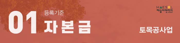 그리고 법인사업자는 법인등기부등본 또한 확인하시어 납입자본금이 등록기준인 5억원 이상 되는지를 체크하여 주셔야 하며 사업목적란에 토목공사업에 대한 목적이 들어가 있도록 준비해야 합니다.