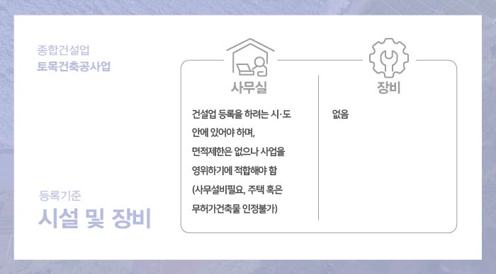 토목건축공사업 면허 등록 및 사업운영을 하기 적절한 사무공간의 준비가 필요합니다.