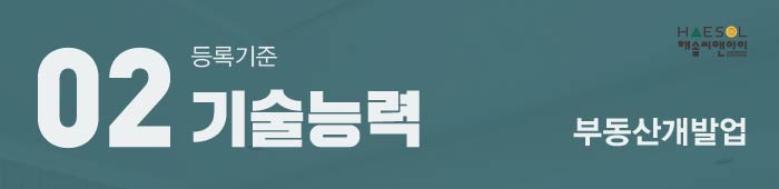 기술자가 갖추어야 할 자격 요건은, 부동산개발 전문인력 2인 이상으로 전문인력 사전교육을 이수해야 합니다.