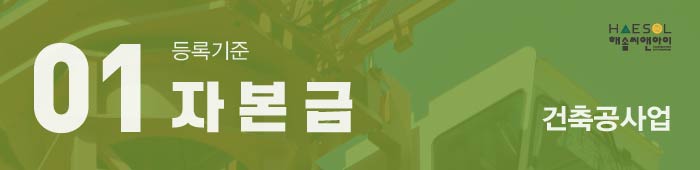 자본금은 건설업 영위를 위한 목적을 가진 건설업 실질자산으로 준비되어야 하며, 법인사업자의 경우 법인등기부등본상 납입자본금 또한 등록기준 이상 되어야 합니다.