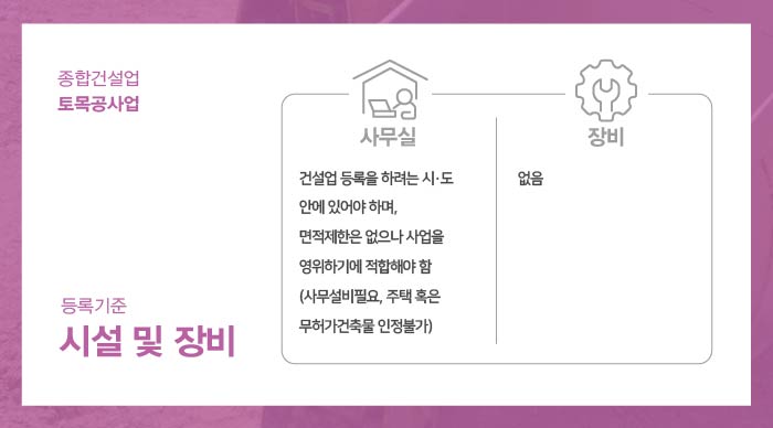 토목공사업은 사무환경설비가 조성된 사무실이 필요합니다.